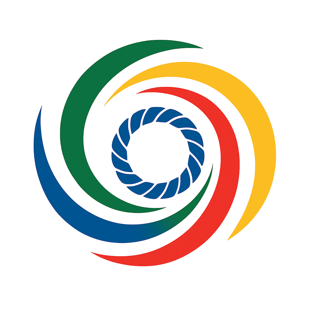 Inspirado nas rodas de capoeira, o ícone representa o movimento do corpo em harmonia com o outro. As curvas coloridas orbitam em torno de uma corda azul — símbolo de energia, ritmo e tradição brasileira.