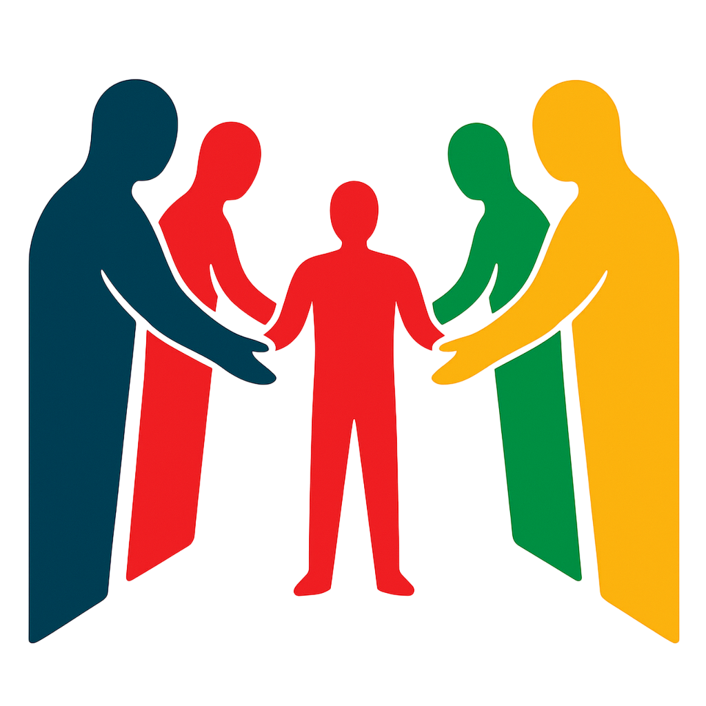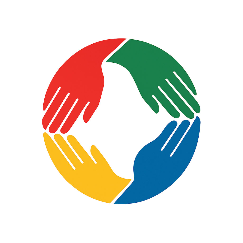 O ícone simboliza a união e o respeito que sustentam a dignidade humana. As formas que se tocam em círculo representam mãos que se encontram — diferentes em cor e origem, mas iguais em valor e presença.