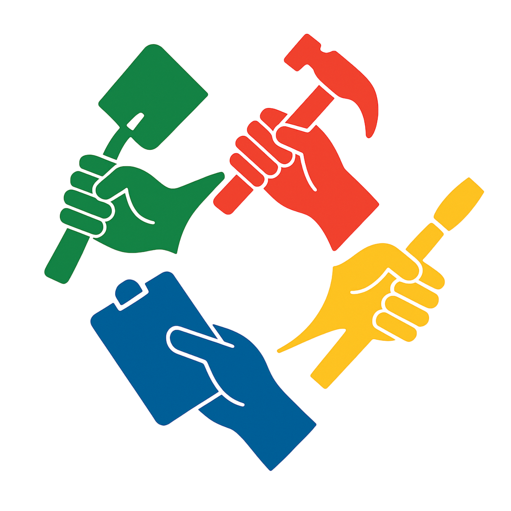 O ícone representa a força coletiva que move o Brasil — o trabalho como elo entre diferentes saberes e profissões. As quatro mãos, nas cores do portal, simbolizam a união dos trabalhadores do campo, da indústria, dos serviços e das artes, cada uma empunhando a sua ferramenta.