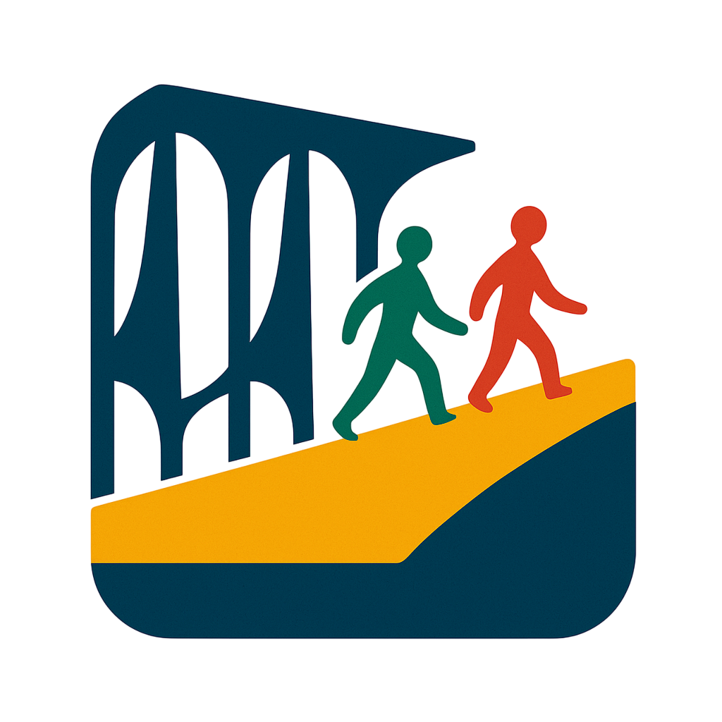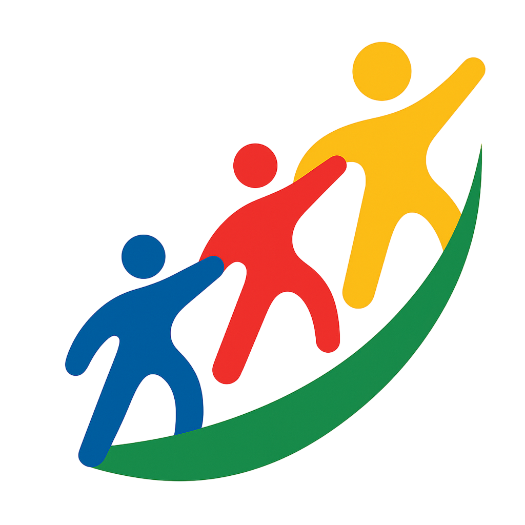 O ícone simboliza a construção de um país que cresce junto. As figuras humanas geométricas se erguem em curva ascendente, representando a solidariedade e o progresso que nasce do cuidado com o outro.