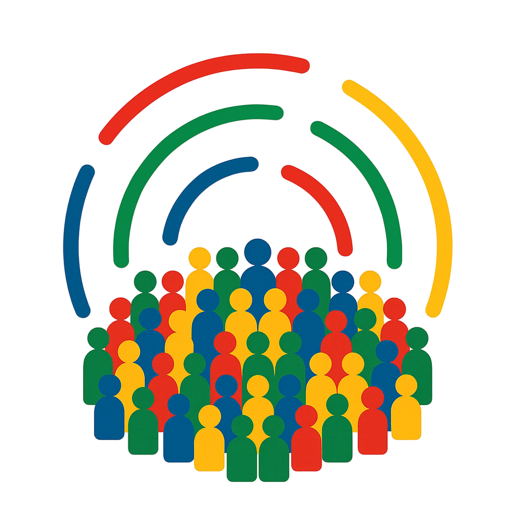Inspirado na força da comunicação popular, o ícone representa o povo como centro da fala pública. As ondas coloridas simbolizam as vozes que ecoam de todos os cantos do país — a informação nascendo da base e se espalhando de forma livre e coletiva.